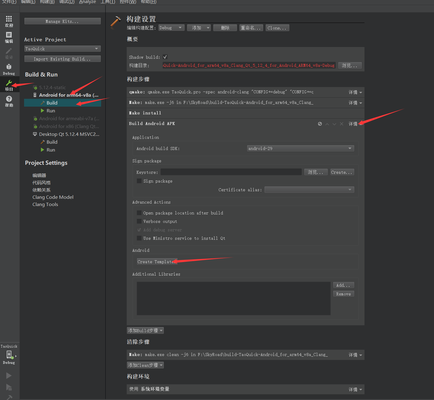 需要先安装Android版的Qt。 一般在Qt的安装包中都有集成,安装的时候勾上就行