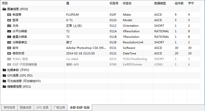 采用专业软件可以获取更多的EXIF信息