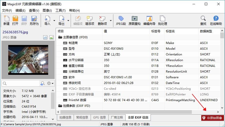 当然也有小部分专门的软件比较强大可以兼顾以上的特征的,比如MagicEXIF编辑器,会最大限度按照原始图进行保存,这些小特征保存后不会丢失~