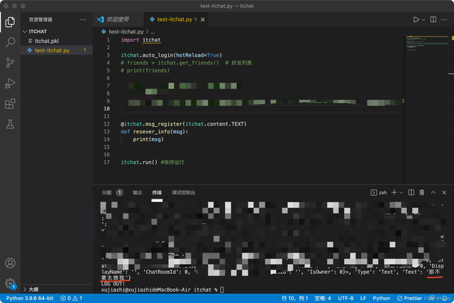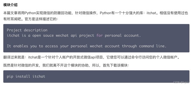 既然都用python解决问题了,第一步当然是明确用什么库啦,直接执行pip install itchat:
