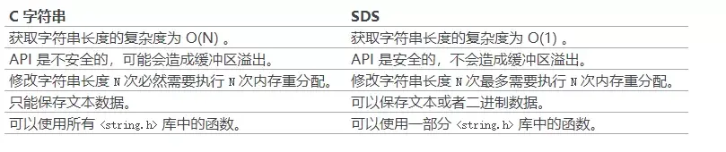 - 二进制安全:C语言字符串只能保存ascii码,对于图片、音频等信息无法保存,sds是二进制安全的,写入什么读取就是什么,不做任何过滤和限制;