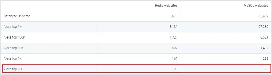 可以看到Redis总体份额排名第9并且在全球Top100站点中部署数量与MySQL基本持平,所以Redis还是有一定的江湖地位的。