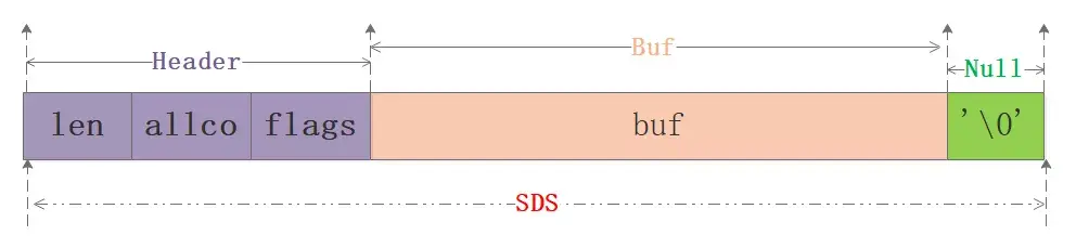 在C语言中使用N+1长度的字符数组来表示字符串,尾部使用'\0'作为结尾标志,对于此种实现无法满足Redis对于安全性、效率、丰富的功能的要求,因此Redis单独封装了SDS简单动态字符串结构。