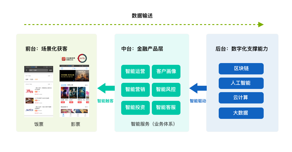 智能服务:第一,智能推荐。通过数据识别客户需求,并根据需求主动推荐产品、资讯及相关服务。第二,数据产品。通过整理和分析客户的海量金融数据,为客户提供数据产品,让客户更了解自己。第三,智能服务。利用人工智能等先进技术,通过机器提供一部分原本仅能由人工提供的复杂服务。例如,招商银行APP5.0中的摩羯智投功能,能根据客户的“目标—收益”要求,提供以往仅能由理财经理提供的组合投资建议服务,客户只需“一键购买”并享受后续服务。第四,风险管理。客户行为的数字化使风险场景有更多可识别的数据痕迹,银行通过对客户行为数据的精准分析,可以智能识别客户交易风险并采取风控对策。