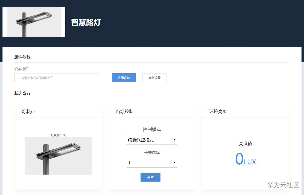 相信不少同学都做过“基于物联网平台构建智慧路灯应用”这个微认证,在这个微认证中,我们构建并部署了一个智慧路灯应用,这个应用拥有一个web界面,可以注册路灯设备,可以获取路灯设备的状态和上报的环境亮度数据并显示到界面上,还可以控制路灯的开关。