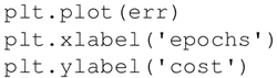 绘制误差在训练周期中的变化图,验证网络的均方误差在训练时是否得到优化,对于一个好的训练,误差应该随着训练周期的增加而减少: