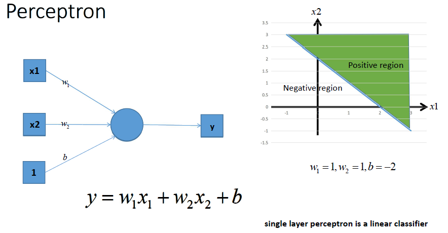 利用我们单层的感知机, 用它可以划出一条线, 把平面分割开:
