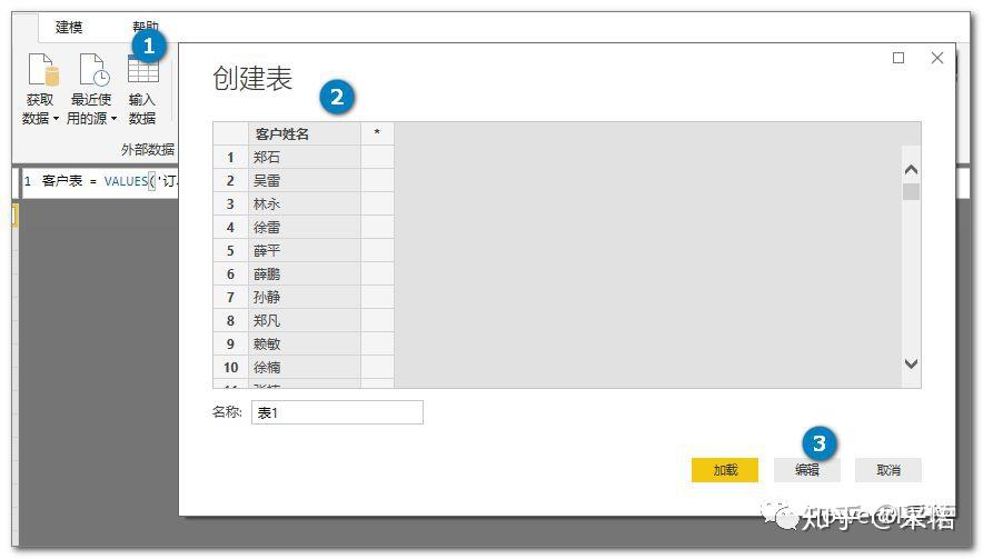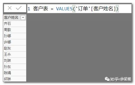 假如数据模型中只有一张订单表,需要从订单表中提取客户表,可以直接使用VALUES函数提取一个不重复客户表,