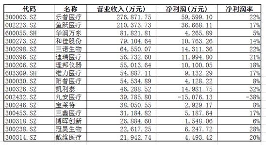 医疗器械的每个细分领域市场容量相对都比较小。比如骨科算是医疗器械细分领域里面比较大的行业了,国产公司一年卖到3-4个亿基本上就能排名全国前三了,这个体量和做药的比起来就太小了。比如除新华医疗外,营业收入最多的医疗器械A股上市公司乐普医疗,如果放在同年度制药企业里面进行排名,大概只能在40位左右。