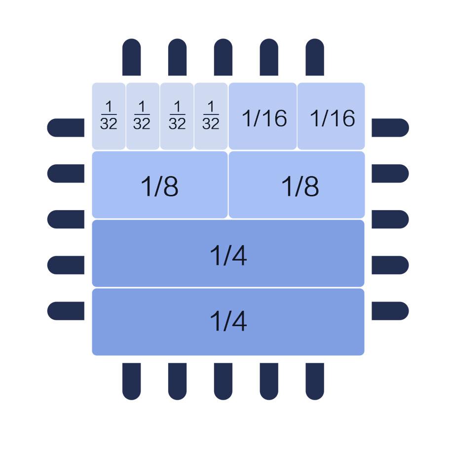 比如,教学场景下,有人算力诉求小,有人算力诉求大,基于AI Core切分的算力虚拟化技术,能够将一片昇腾910 AI处理器进行灵活切分,以匹配开发者多样化的算力诉求: