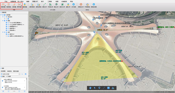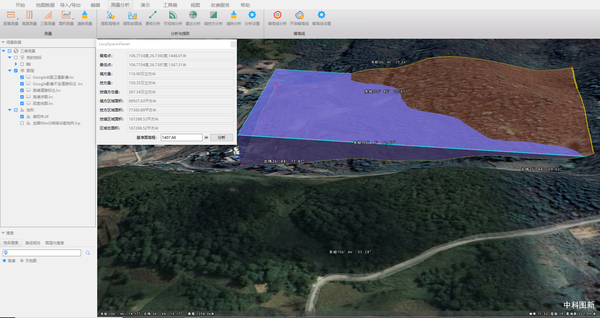 图新地球对地形、虚实模型数据进行距离测量、高度测量、三角测量、面积测量,实际使用误差甚微,几乎可忽略不计。