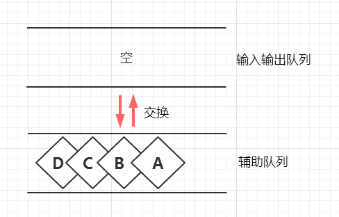 当然完成pop操作后我们还要做一件事情,就是辅助队列和主队列互换,以让未来还能按同样的流程再来一次。
