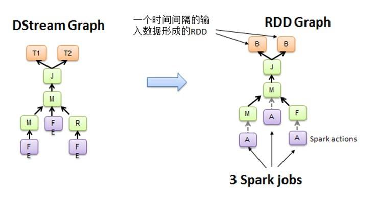 图2.2 DStream Graph转换为RDD的Graph