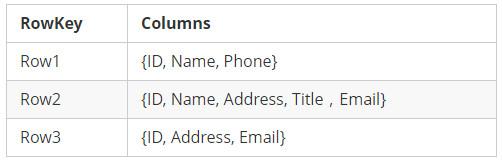 看的出来:每一行中,列的组成都是灵活的,行与行之间并不需要遵循相同的列定义, 也就是HBase数据表”schema-less“的特点。