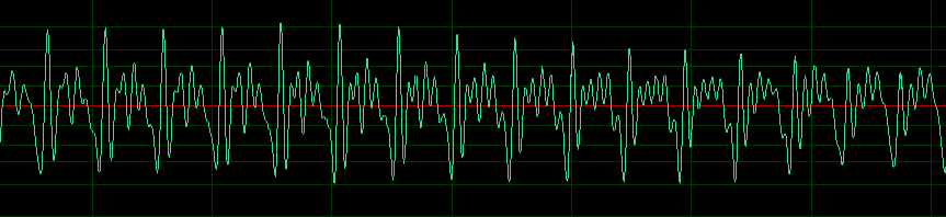 时域图中,语音信号直接用它的时间波形表示出来,上图1是用Adobe Audition打开的音频的时域图,表示这段语音波形时量化精度是16bit,从图中可以得到各个音的起始位置,但很难看出更加有用的信息。但如果我们将其放大到100ms的场景下,可以得到下图2所示的图像。