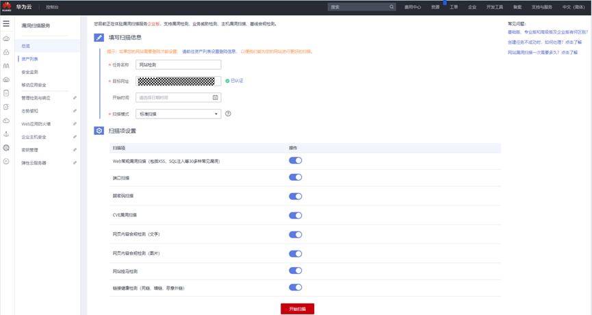 3、华为云漏洞扫描服务VSS第一时间提供了对该漏洞的检测能力。开启华为云VSS的漏洞扫描功能(免费开通基础版,或购买专业版、高级版、企业版),检测网站及主机资产是否存在该漏洞,主动识别安全风险。