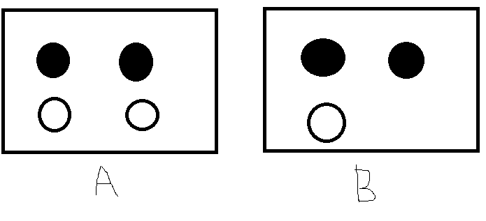 假设我们有如下的7个球在A,B两个框中,如果我们随便取一个球,已知取到的球来自B框中,那么这个球是白球的概率是多少呢?