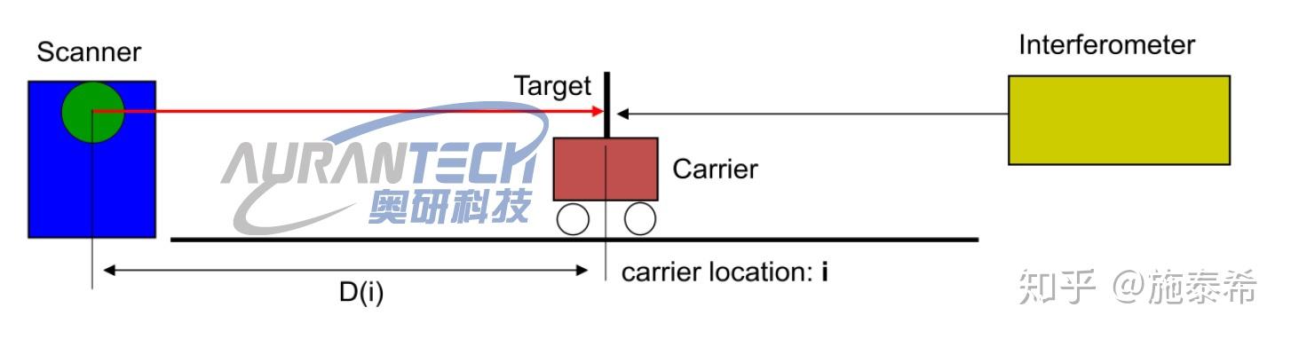 真实距离D(i)由更高精度的激光干涉仪测得,通过对比10000次距离采样的平均值与D(i)的误差值,即可计算出改正值。我们称之为“测距校准”。距离校准可在扫描仪实时测量的同时进行实时改正,这样就能提高激光测距系统的测距精度。然而经过校准后还会存在微小的误差,这个误差就是所谓的“线性误差”,线性误差可以用相同的校准程序进行测定。
