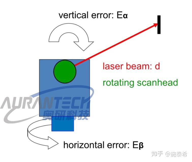 激光束的发射角度是根据反射镜的角度来测量的,激光束真实的发射角度与反射镜的实际角度并不是完全一样。这个误差我们称之为“测角误差”。测角误差又包括水平测角误差Eβ与竖直测角误差Eα。对于Z+F 5010来说水平与竖直测角误差都是0.007°RMS(0.122mrad rms)。