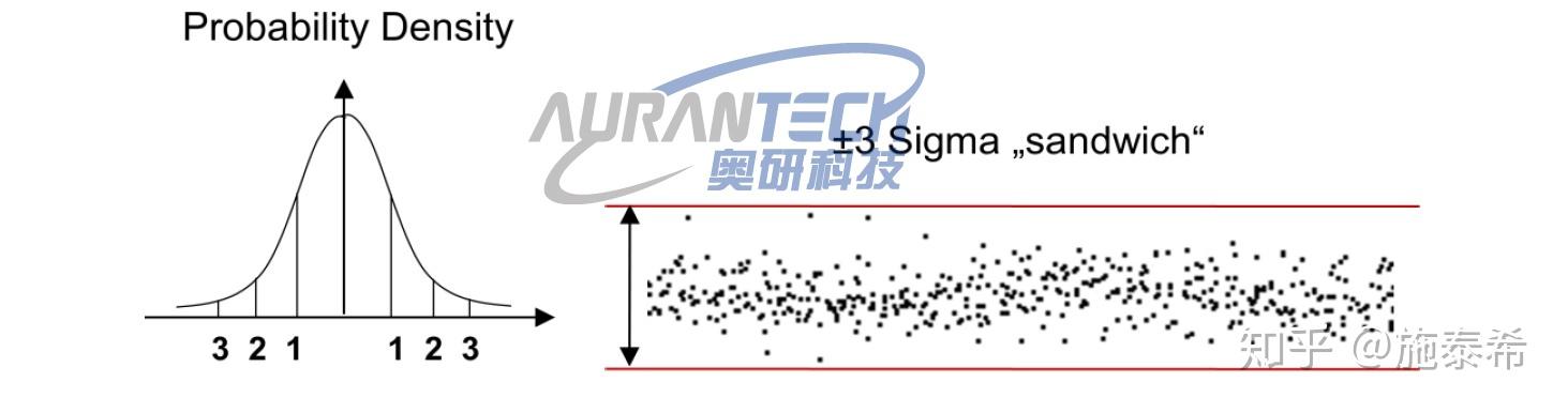 所谓距离噪声是指,特定距离下的测距采样值与其均值(特定距离下的10000测距采样均值)的差值。它符合高斯正态分布,可以表征每次测距读数的分布情况,一般以1 Sigma表示。它的意思是所有采样值里有68.3%是在以平均值为基准±1Sigma以内的。对于正太分布来讲,1Sigma 即所谓的均方根(RMS/Root Mean Square),也就是扫描仪的测距噪声。