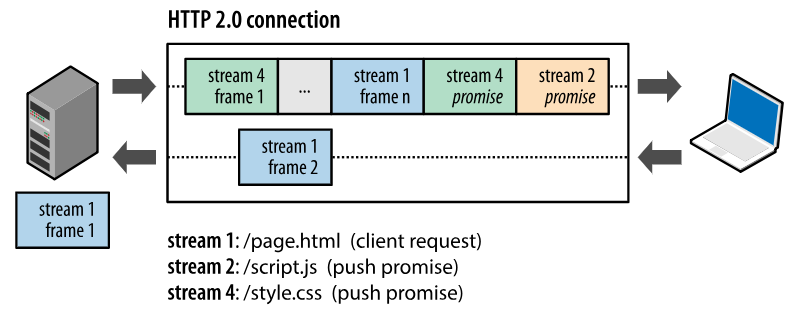 在实际的C/S交互中这种主动推送额外资源的方法很有效,因为几乎每个网络应用都会包含多种资源,客户端需要全部逐个获取它们,此时如果让服务器提前推送这些资源,从而可以有效减少额外的延迟时间,因为服务器可以知道客户端下一步要请求什么资源。
