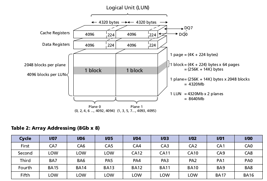 以镁光 nandflash 芯片为例,摘选一下我认为比较重要的点: