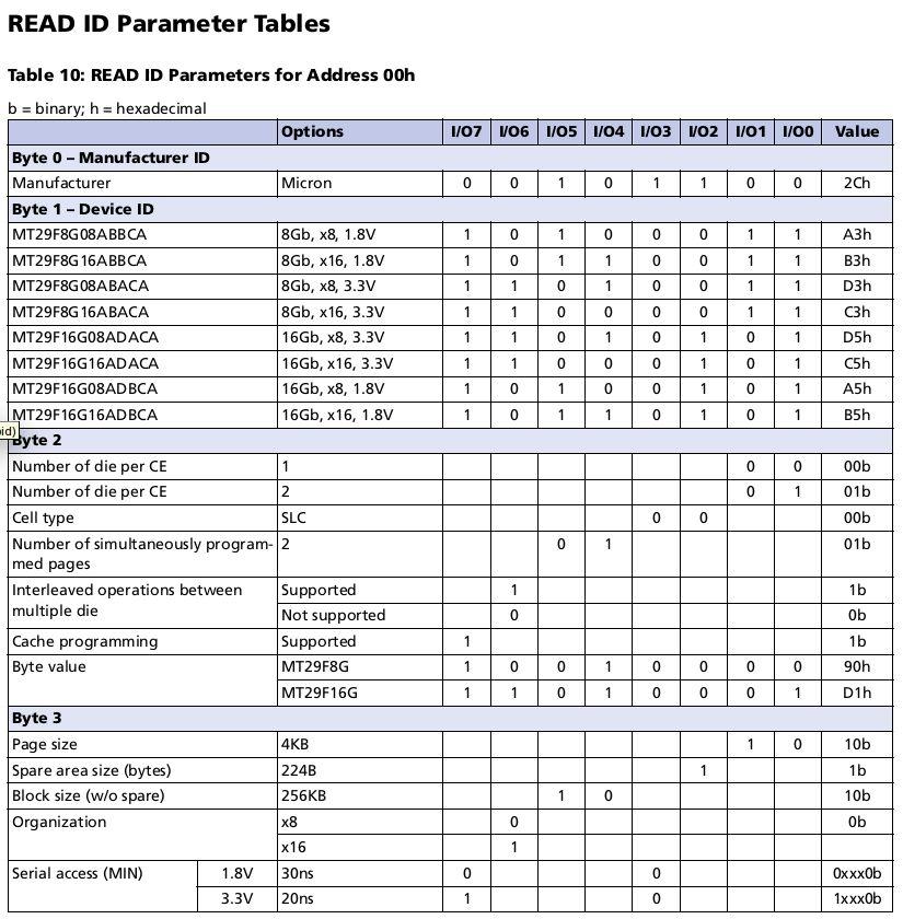 - 了解 nandflash 芯片的基本信息,例如ID、容量、类型(SLC/MLC) - 结合板子的原理图一起查看,以确定 CPU 和 nandflash 芯片的引脚连接是否正确。不同厂商(例如三星、镁光)生产的nandflash引脚不一定完全兼容,可能会有一两根引脚有差异;