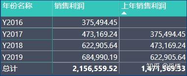 销售利润 =SUM(\'订单\'[利润])上年销售利润 =CALCULATE(\'度量值\'[销售利润],DATEADD(\'日期\'[日期],-1,YEAR))利润差异 = [销售利润]-[上年销售利润]