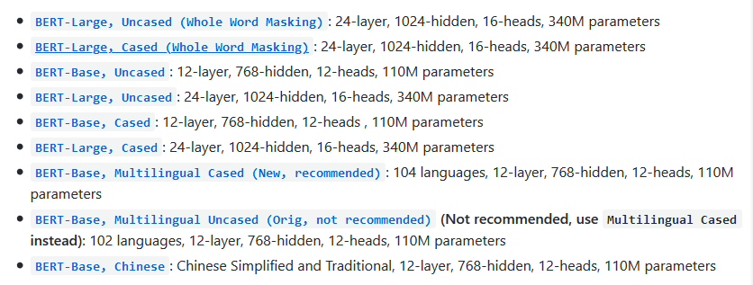 因为我们实际项目主要是识别用户中文搜索,所以选择BERT-Base, Chinese: