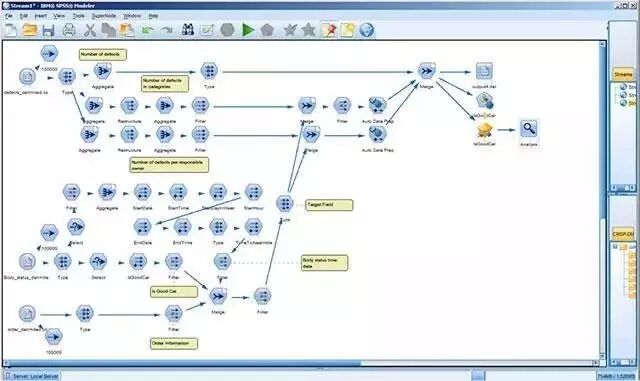 SPSS Modeler 的统计功能相对有限, 主要是提供面向商业挖掘的机器学习算法(决策树、神经元网络、分类、聚类和预测等)的实现。同时,其数据预处理和结果辅助分析方面也相当方便,这一点尤其适合商业环境下的快速挖掘。不过就处理能力而言,实际感觉难以应对亿级以上的数据规模。