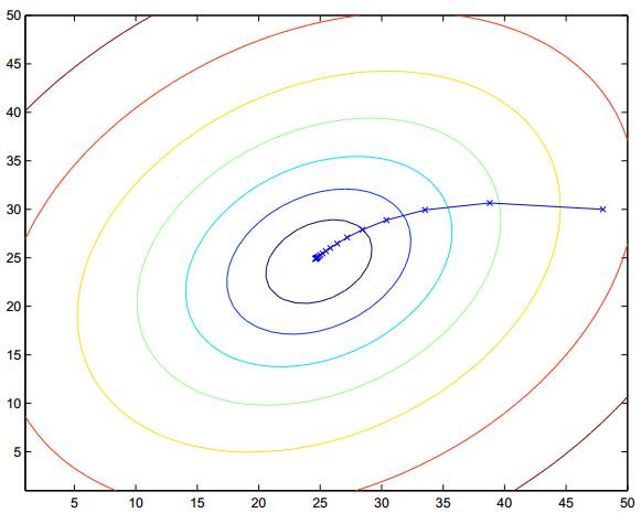 红色曲线是利用牛顿法迭代求解,绿色曲线是利用梯度下降法求解。