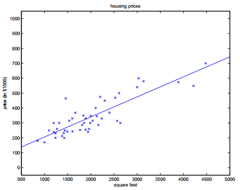 从最简单的两个变量开始(房价与面积之间的函数建模)。