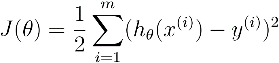 通过建立误差函数(即方差公式,其中1/2使是为了计算方便):