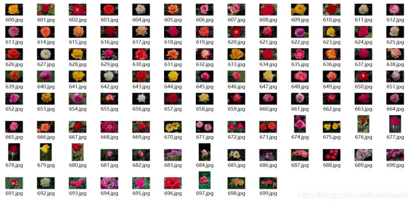 比如,文件夹名称为“6”中包含了100张花的图像,如下图所示。