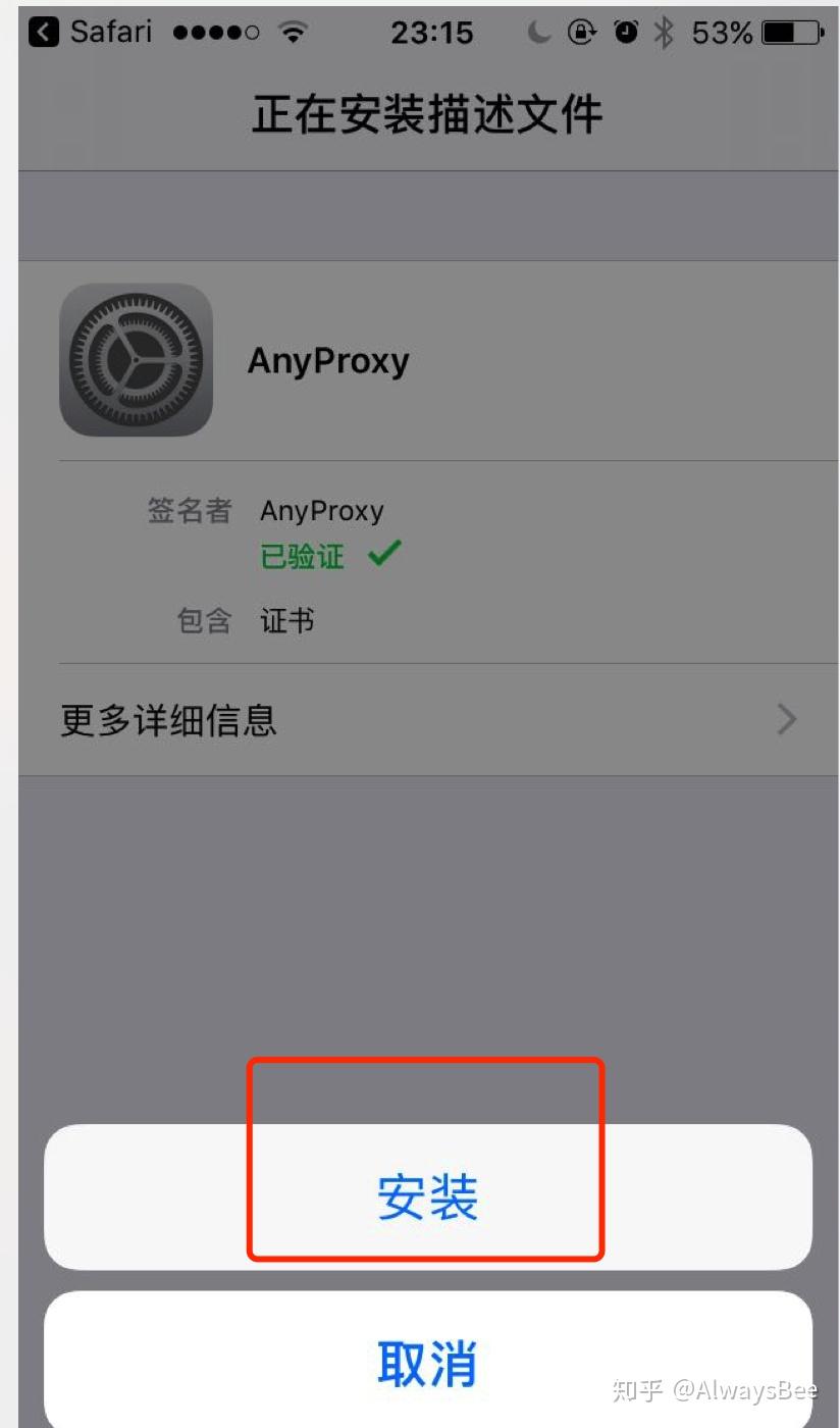 我们只要用手机自带浏览器(如 iOS:safari)访问这个地址即可下载安装这个证书(请确保已经 启动代理 )