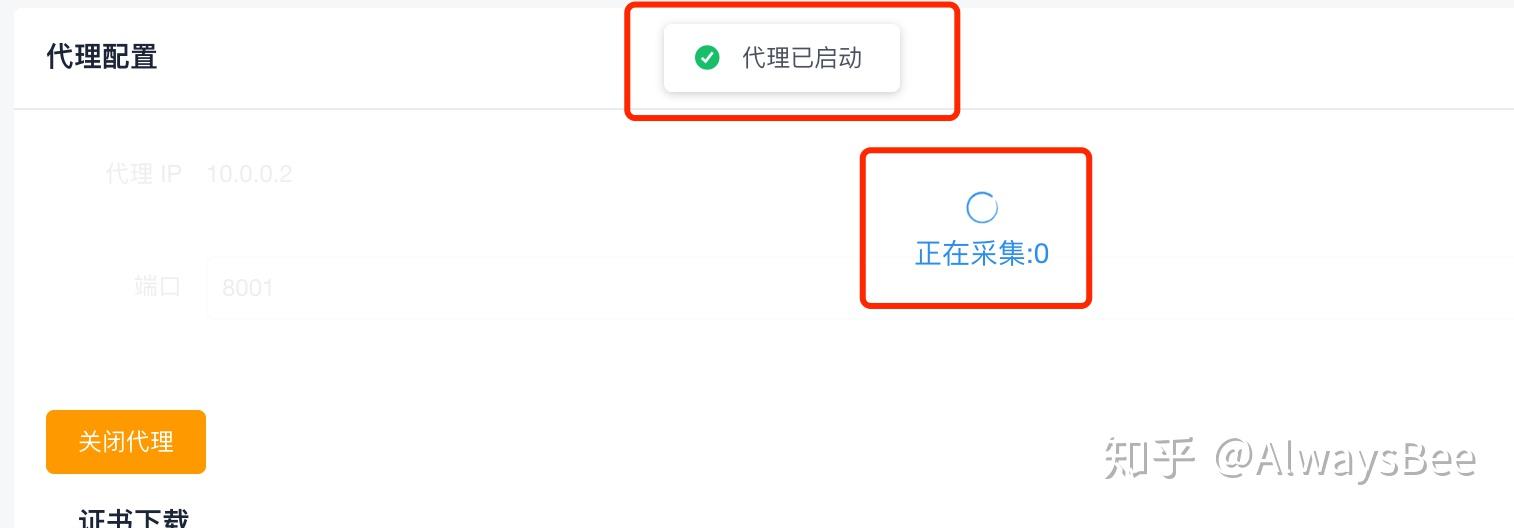 确定这个之后,我们点击 启动代理 ,会显示如下界面,这就意味着代理已经启动