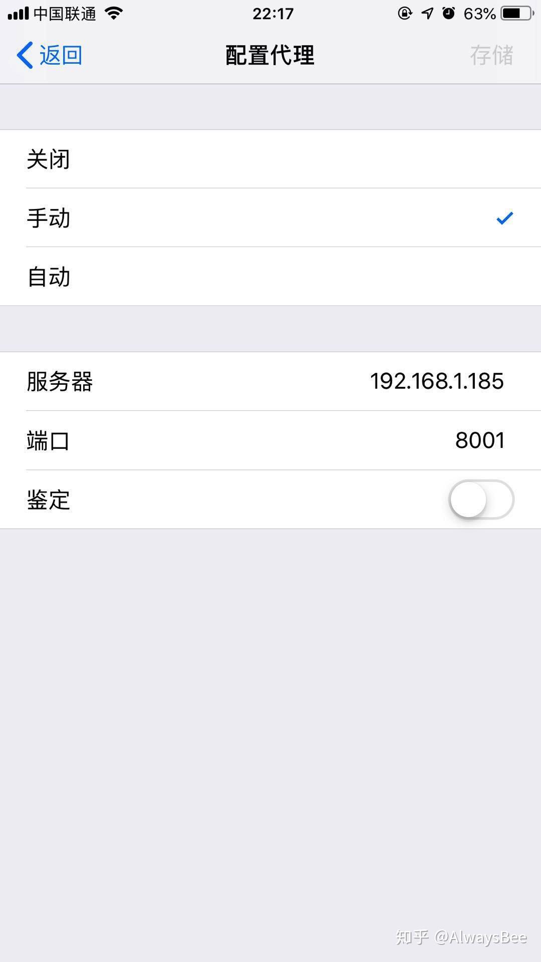 证书安装完毕后,我们要设置手机的代理(点击你所连接的的Wi-Fi即可进入设置界面),请确保手机和电脑连接的是同一个 Wi-Fi(即在同一个局域网内),服务器即助手显示的 IP,即你本机的地址,端口默认是 8001