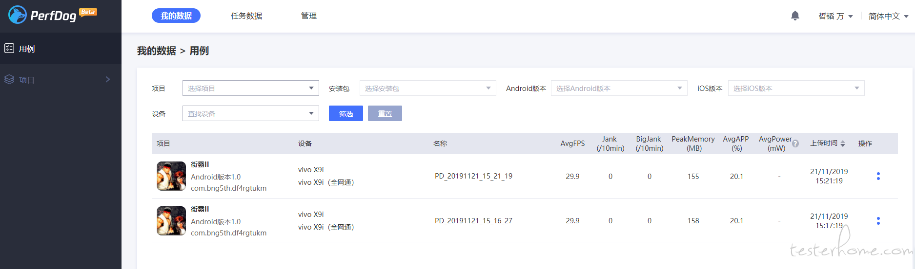 PerfDog 的云端和本地使用的是同一套账号,登录之后即可查看云端数据: