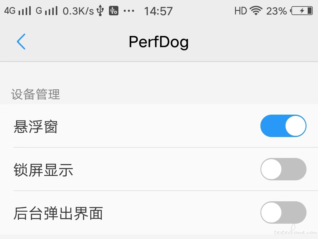 然后选择设置->更多设置->权限管理->选择 PerfDog,打开悬浮窗管理权限,这样在手机上监控应用时也能通过悬浮窗实时查看性能指标: