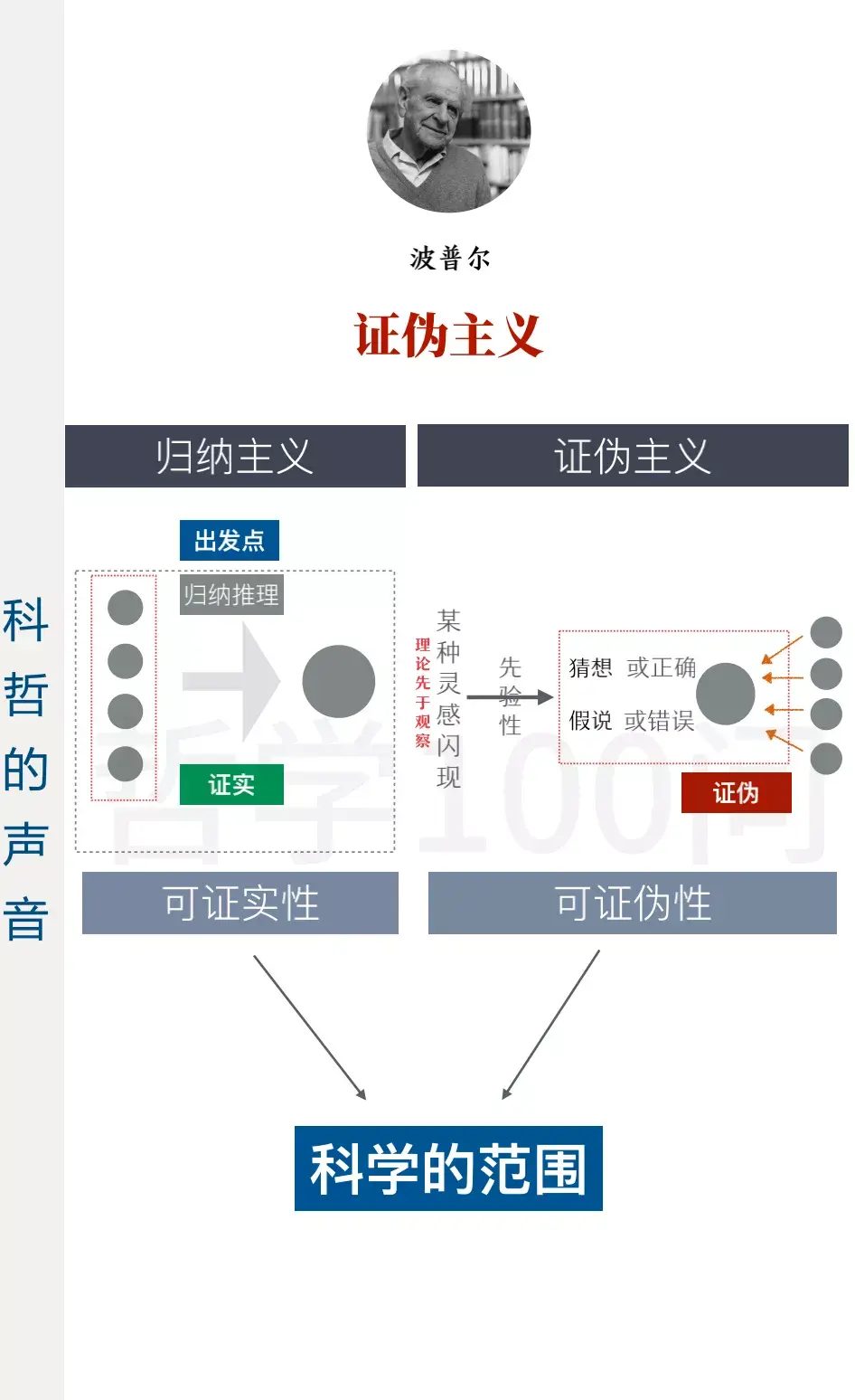 在最后一章的科学哲学中,波普尔提出了“证伪主义”,