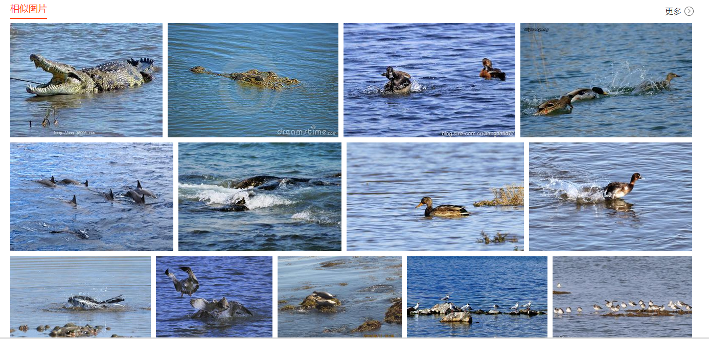 上面用来测试的原图是在网上找的,检索给出的描述表明对该图像的文本判断是正确的,但是检索到的结果却并不理想,只有前两张图像是描述的鳄鱼,其他都不是,只是背景相似。因此应该可以得出结论,百度图像检索没有利用其文本检索的信息,纯粹依靠的是输入图像本身的性质。
