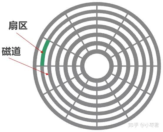扇区是磁盘的最小组成单元。大家应该看出来了,越靠圆心,扇区越短。那么,是不是越往外,扇区越长,存储的数据越多呢?