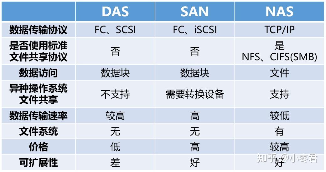 后来,有了iSCSI协议(Internet SCSI,2003年正式成为标准)并且主流操作系统开始支持,就有了IP SAN(使用IP网络和设备)。
