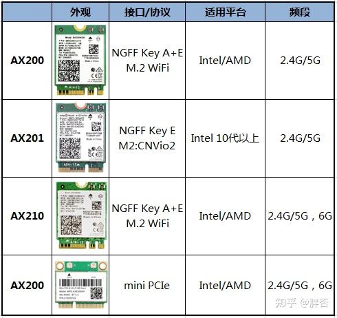 - 在AX200基础上,增加了对WiFi6E的支持,也就是可以支持6GHz频段;除此之外,与AX200是一样的;