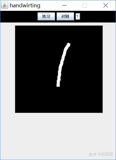 首先会有这么一个界面,在输入框里写入要学习的数字(存储相应对象的数据1),这时候我会将这个黑色区域存下来,并且获取它的每一个点rgb因为是黑白的,所以就将白色设为1,黑色设为0,这几样就可以得到一串子,把他存到名字为“0-1”文件里代表“0”数字的第一组数据。