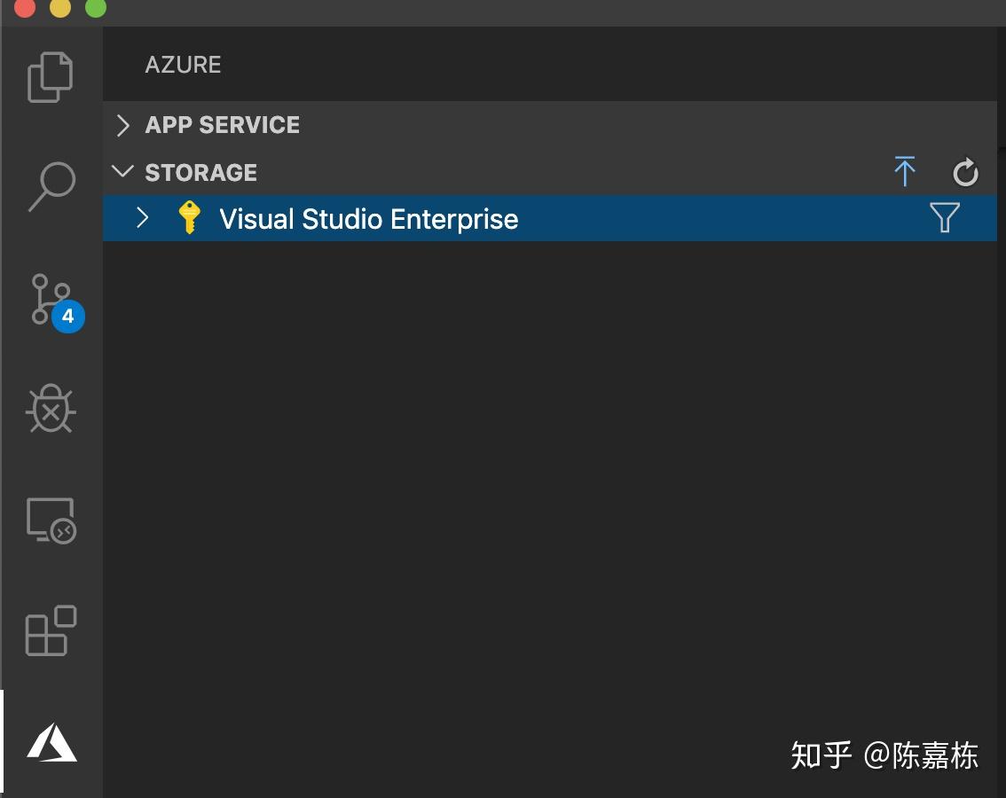 安装了Azure存储扩展后,我们可以从VS Code登录到Azure,并在STORAGE项目下找到我们的订阅。