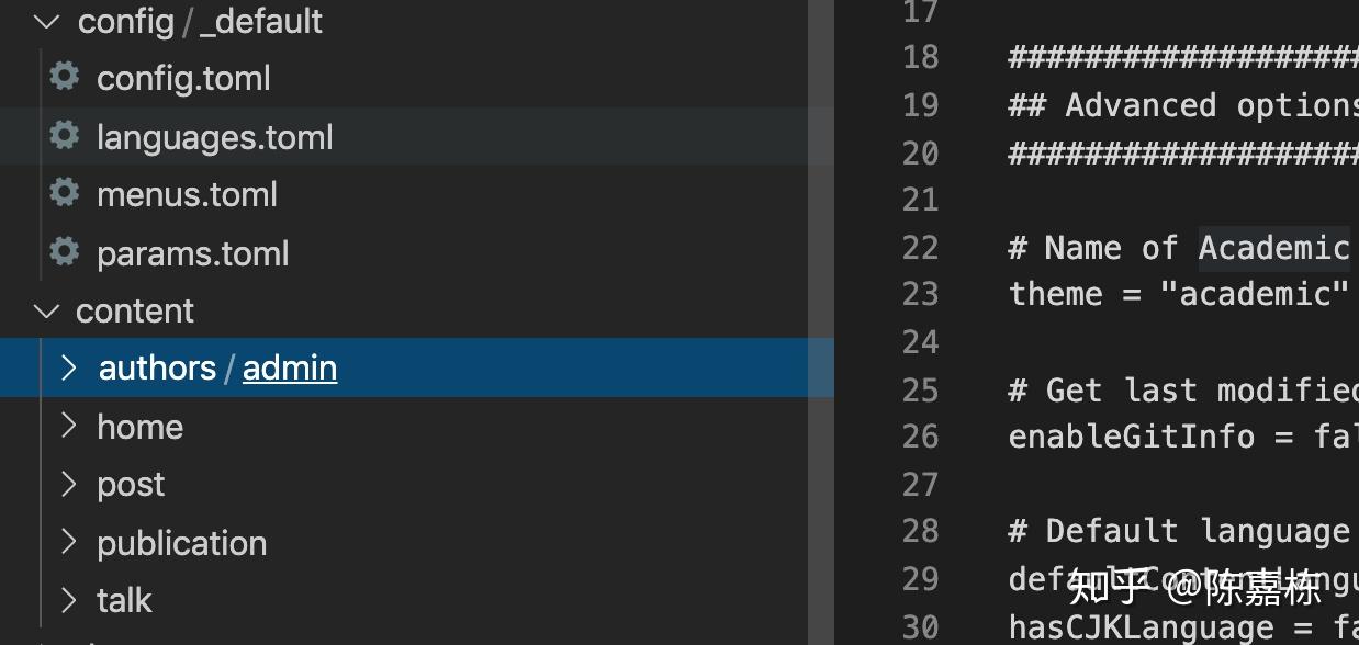 在config文件夹中,你可以找到config.toml文件,该文件是Academic的配置文件,使用的是TOML语法。例如,你可以将网站标题从默认值“Academic”修改为所需的名称。