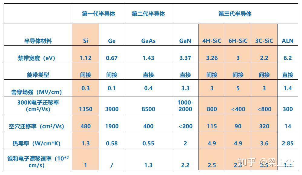 相比传统的硅材料,碳化硅的禁带宽度是硅的3倍;导热率为硅的4-5倍;击穿电压为硅的8倍;电子饱和漂移速率为硅的2倍。