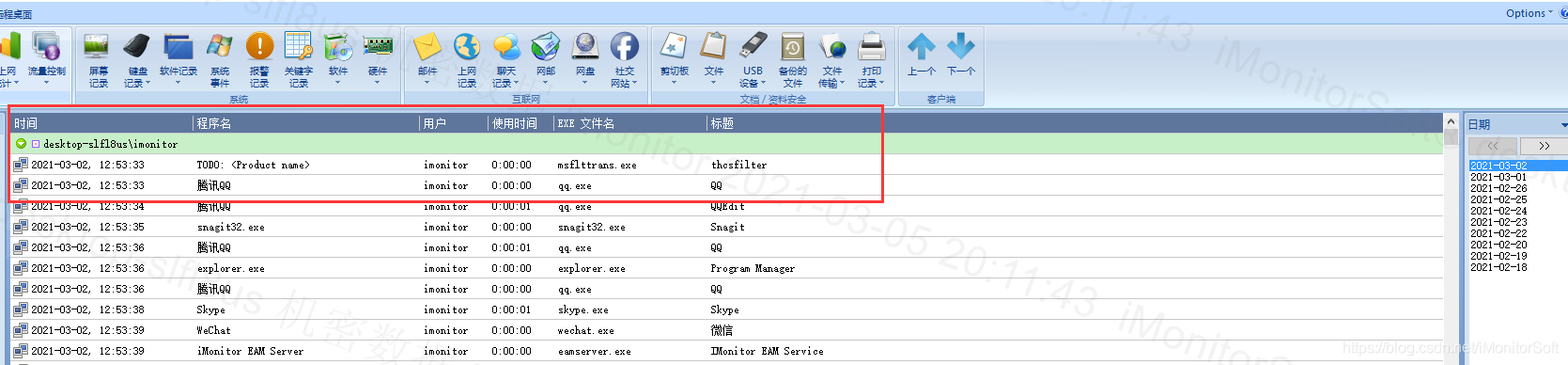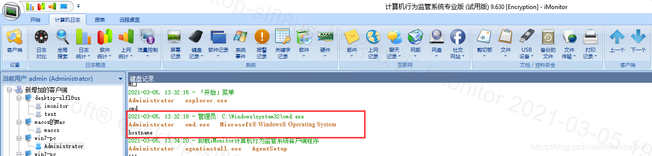 以上是iMonitor EAM(www.imonitorsoft.cn)的计算机日志的系统记录部分。