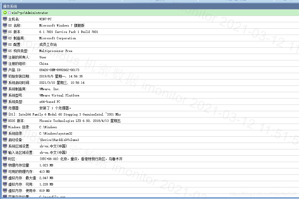 软件记录可以看到客户端操作系统的具体记录,包括主机名,处理器,内存,系统目录,等各种信息。